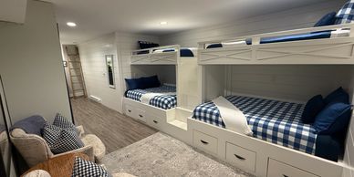 The family suite bunkhouse bedroom is perfect for families sharing as it provides two double beds on the bottom with single beds on top with ajoining full ensuite bathroom.